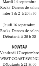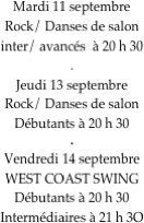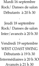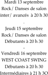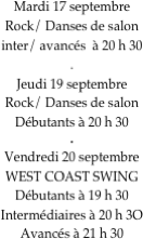 le 17 septembre à 20h30 inter/avancés ( voir plus bas.)