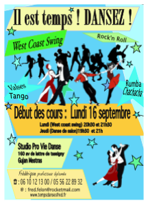 la soirée sera précédé d’un stage de rock ouvert au débutants rock qui ont commencé en septembre. SVP, ne tardez pas à vous inscrire pour me faciliter l’organisation.