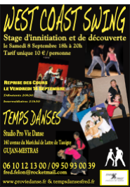 Stage initiation découverte du West Coast Swing : Le 8 Septembre de 18h à 20h